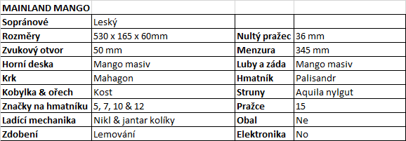 Soprano ukulele Mainland mango pineappleskladem 16 600 Kč