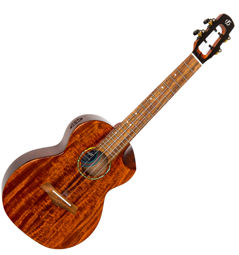 The Flight Mustang is a tenor-sized, all solid acacia ukulele. It is packed with unique features: intricately designed side sound hole, scalloped cutaway, offset dots on an acacia fretboard, D’Addario strings, pickup, and a unique and captivating headstock. It’s not just a ukulele…it’s a Mustang.