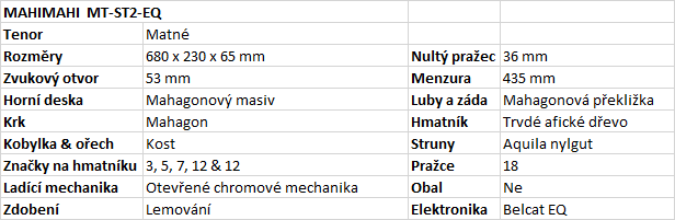 Tenor elektroakustické ukulele Mahimahi MT-ST2-EQ Mahagonskladem 14 250 Kč